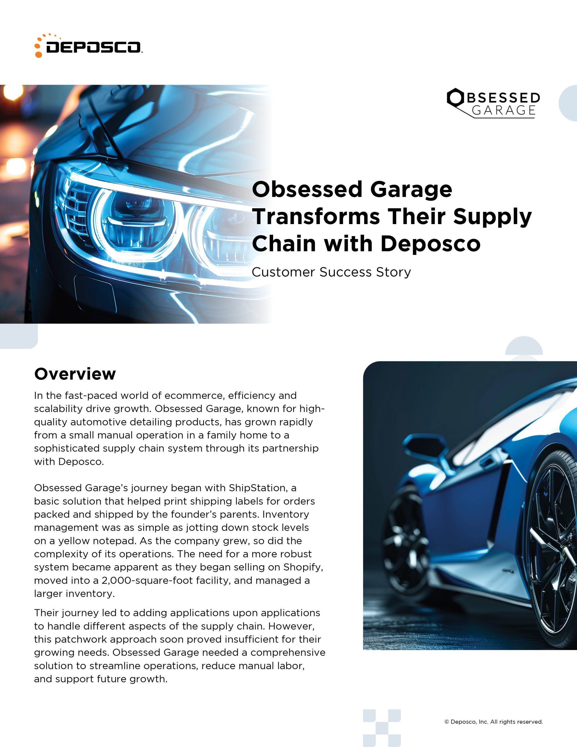 In the fast-paced world of ecommerce, efficiency and scalability are key to sustaining growth. Obsessed Garage, known for its high-quality automotive detailing products, has experienced rapid expansion since its humble beginnings. What started as a small, manual fulfillment operation run out of a family home has evolved into a sophisticated supply chain system, thanks to a strategic partnership with Deposco.