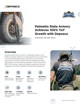 Deposco also improved PSA’s inventory accuracy to 99.97%. Faster fulfillment times and accurate inventory management enhanced customer satisfaction and loyalty, so they could set their sights on expansion opportunities like ammunition production, new product offerings, and an in-store pickup option for firearms.